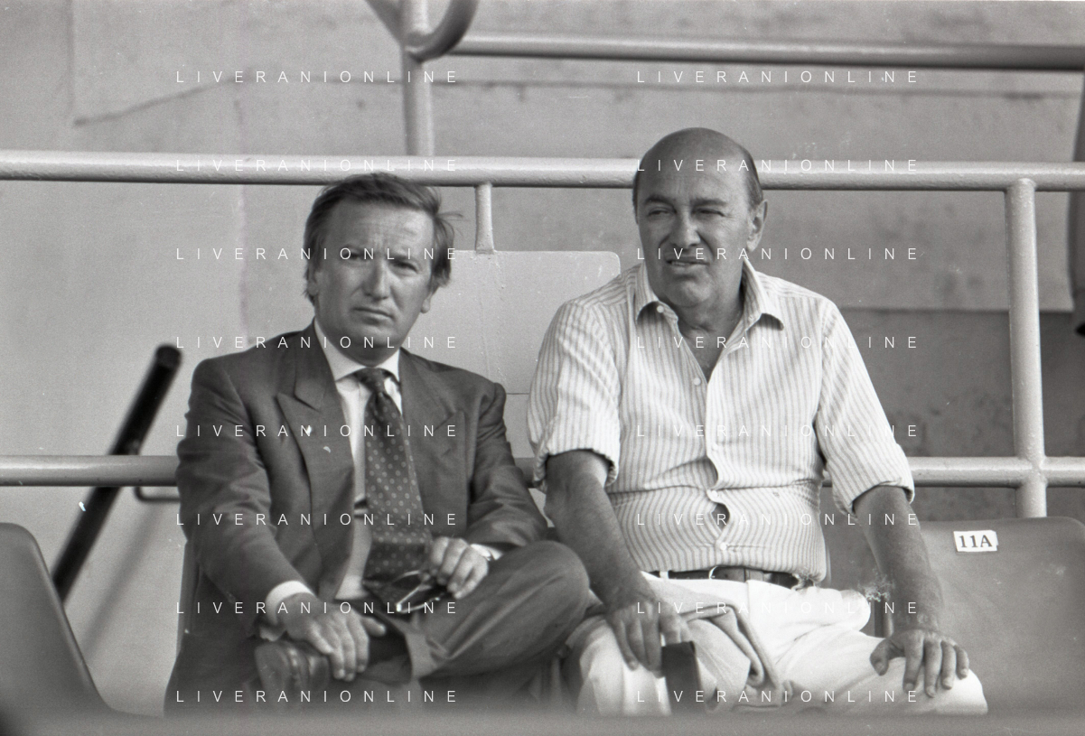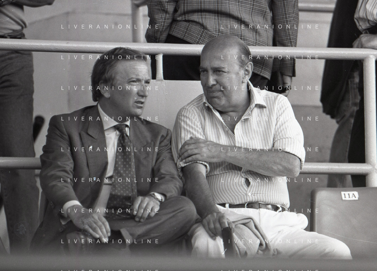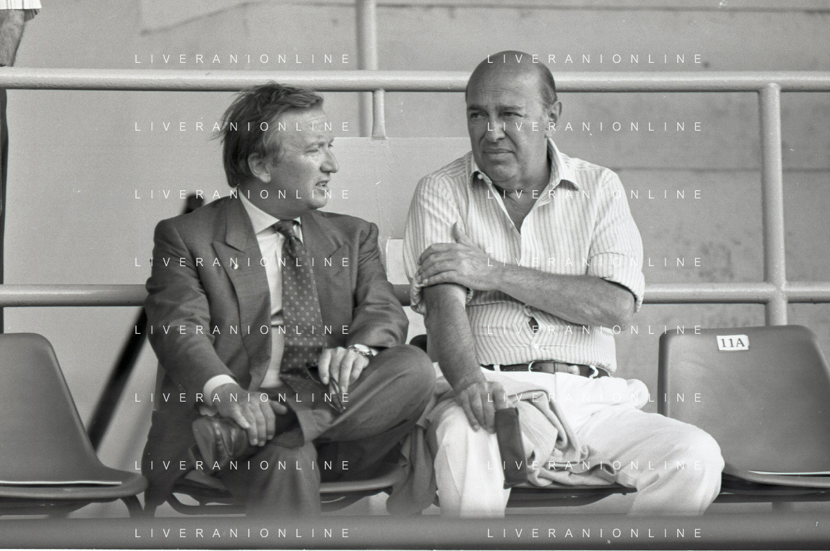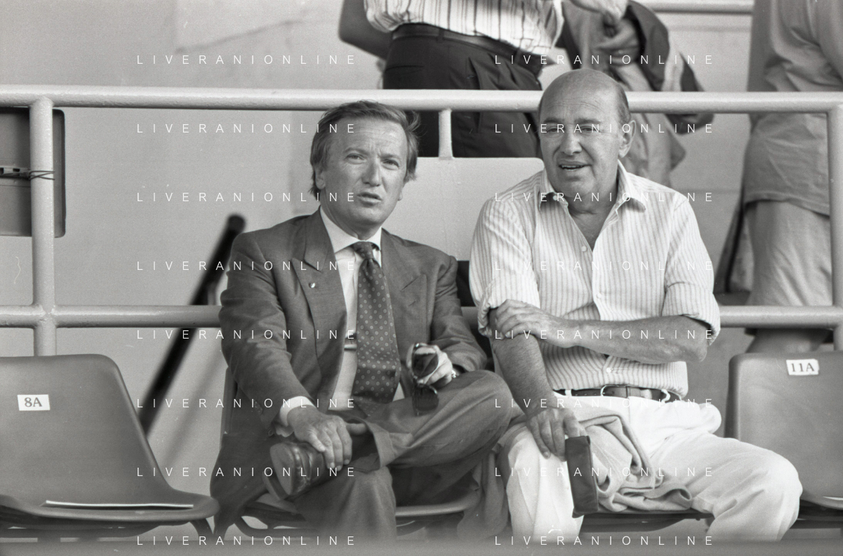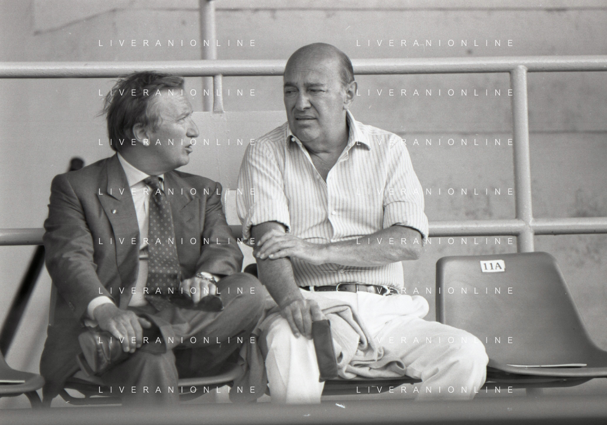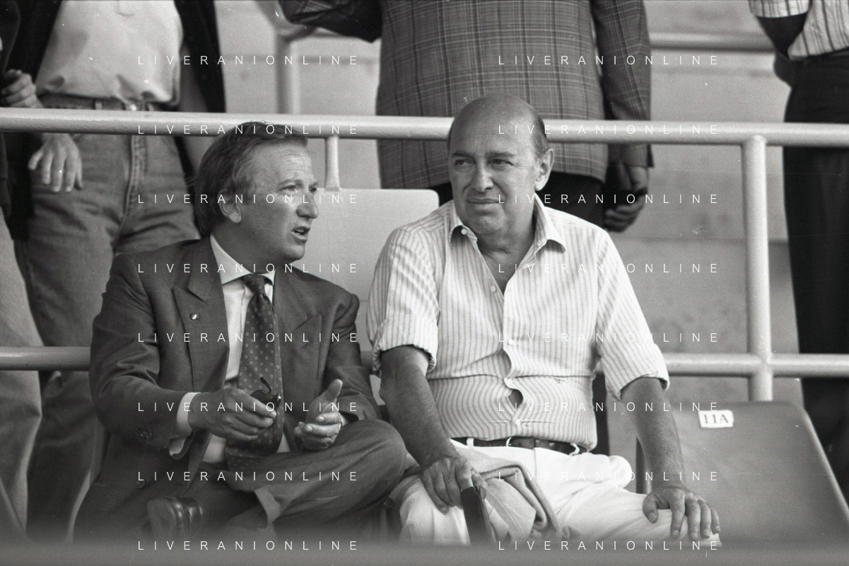NEG-RETROSPETTIVA GIAN MAURO BORSANO PRESIDENTE TORINO CALCIO NELLA FOTO GIAN MAURO BORSANO NELL'ANNO 1990-1991 PRESIDENTE DEL TORINO CALCIO CON PAOLO MANTOVANI PRESIDENTE SAMPDORIA CALCIO AG ALDO LIVERANI SAS