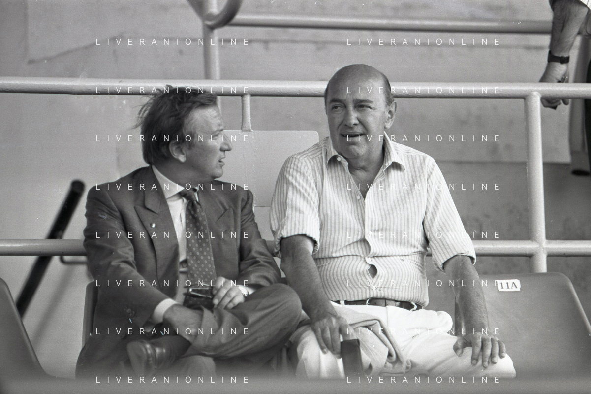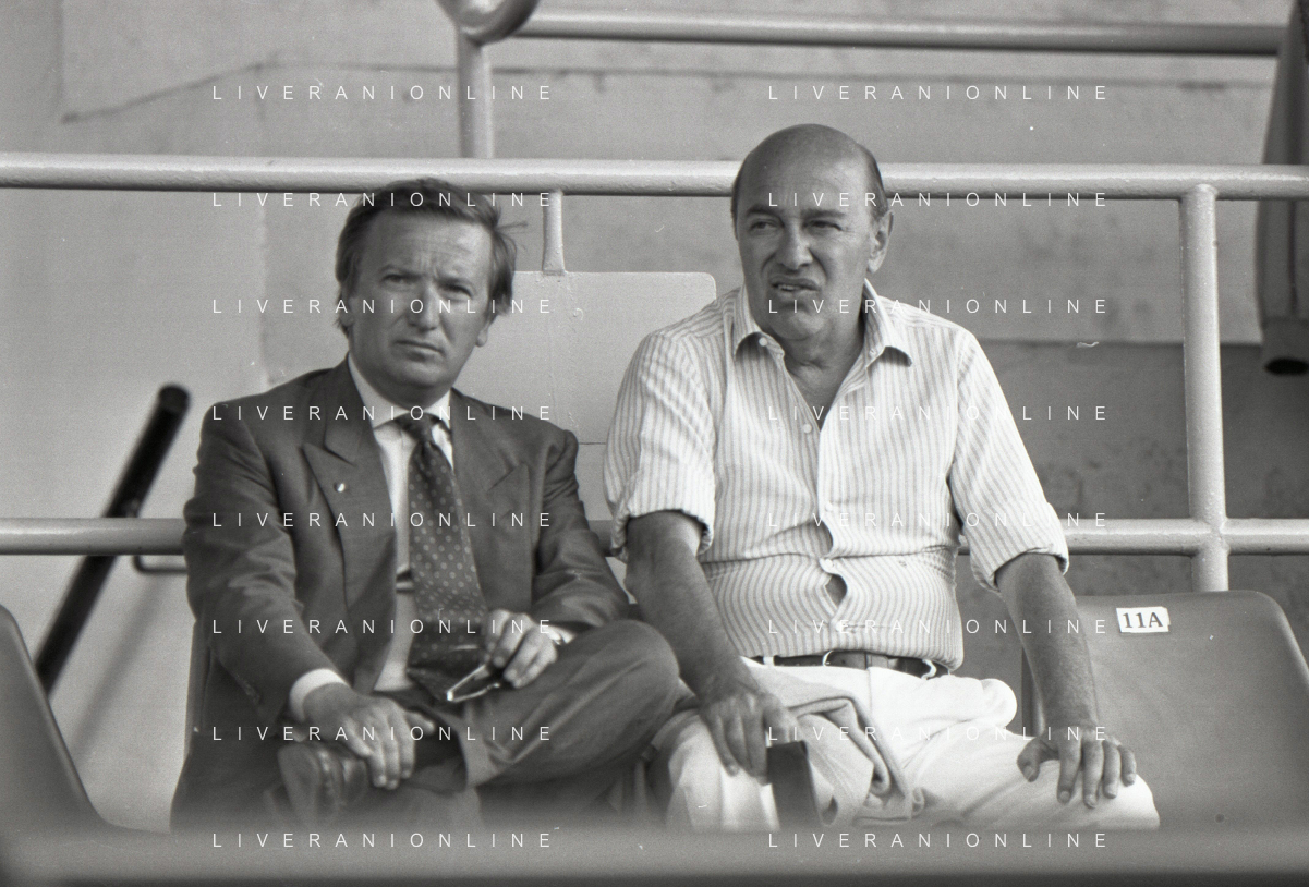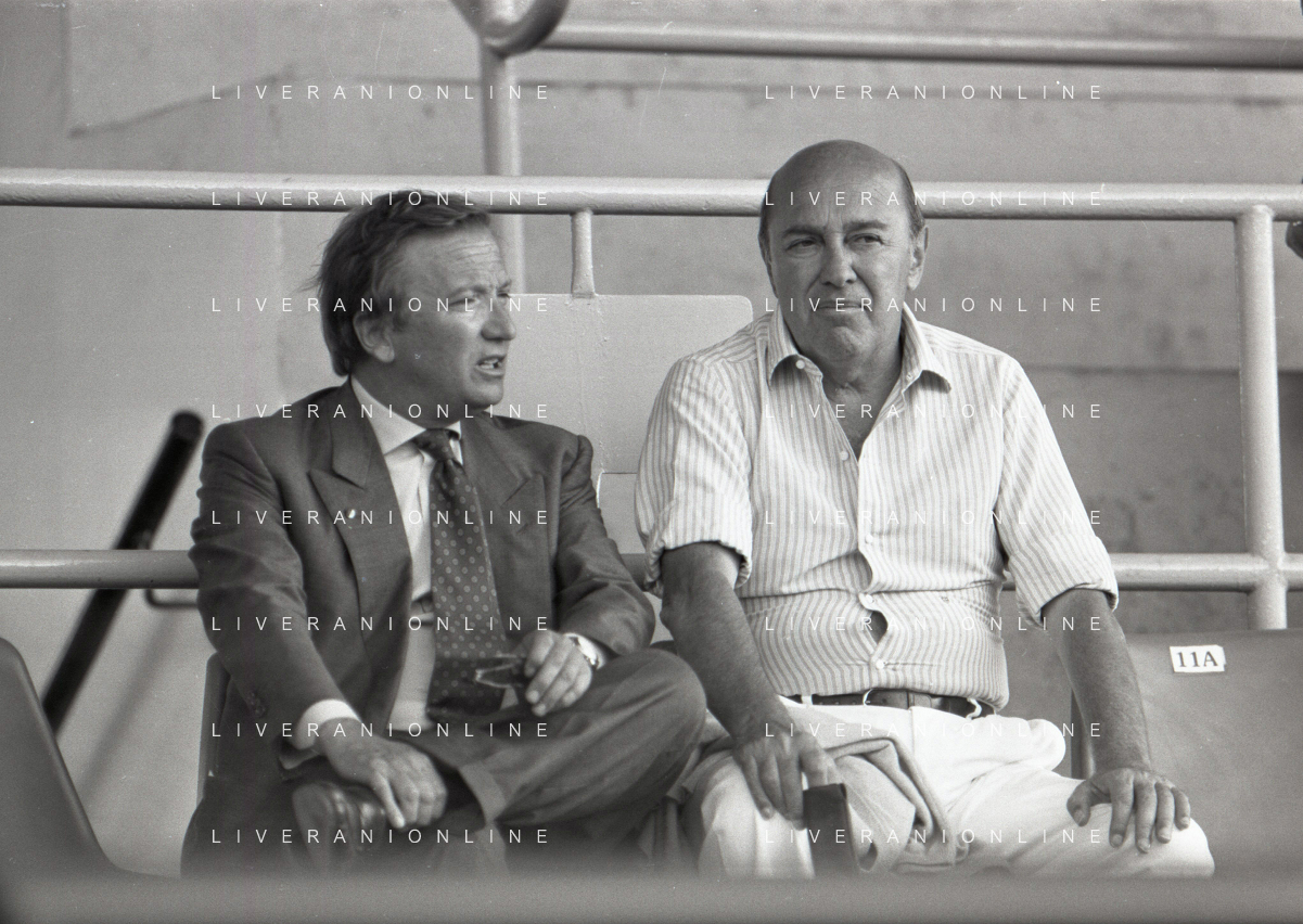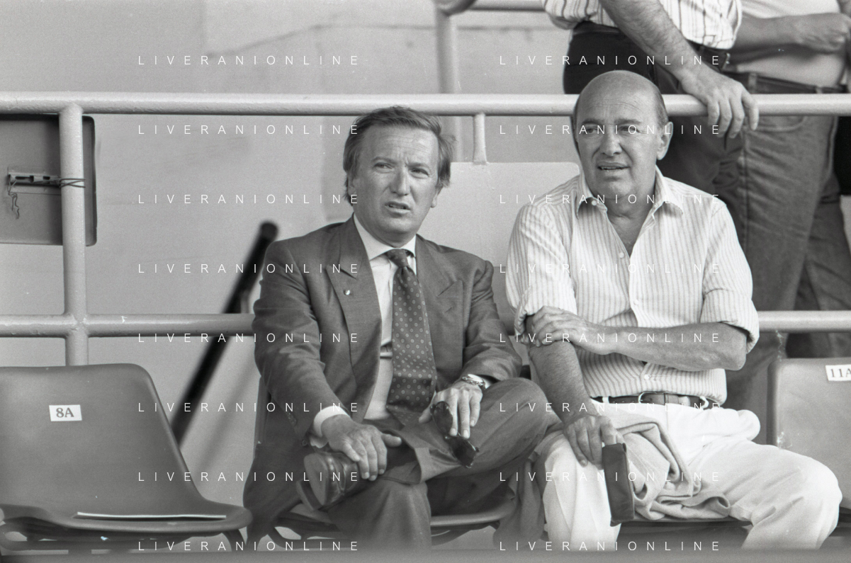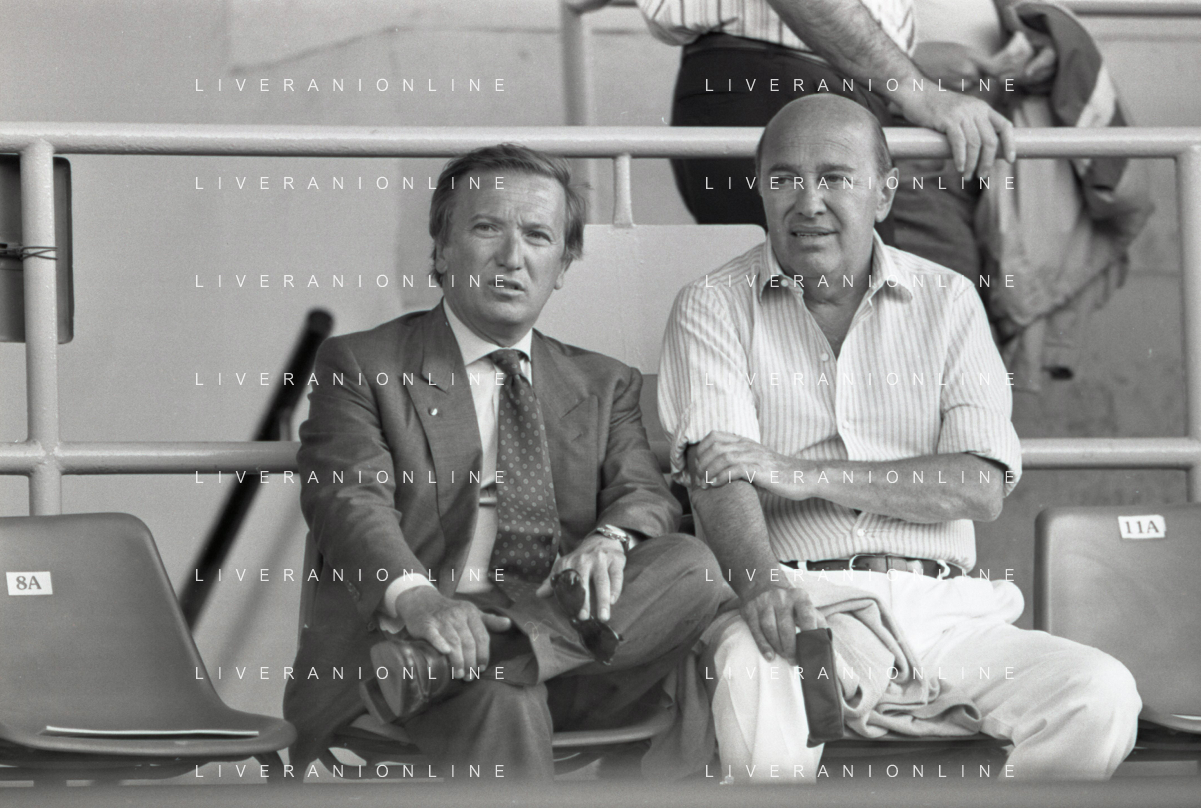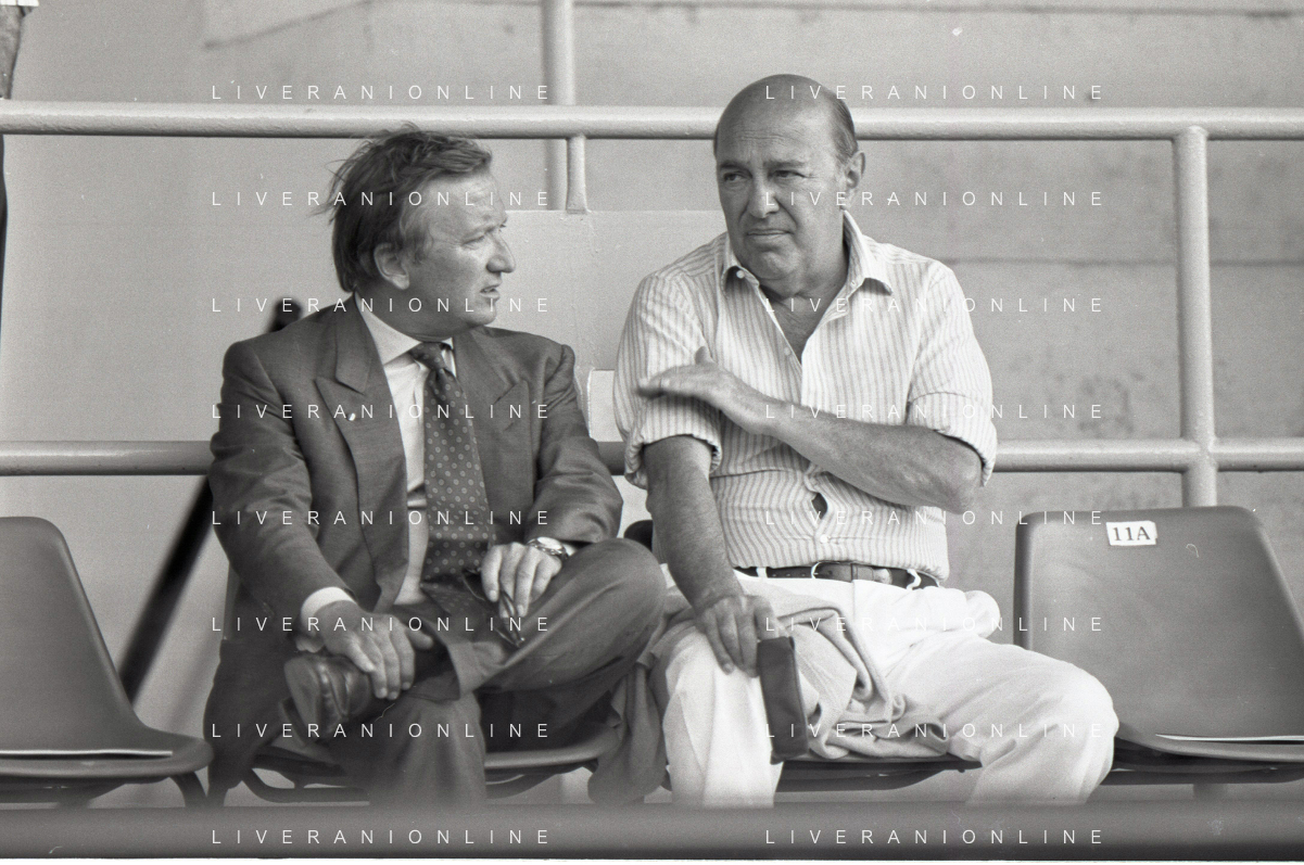 NEG-RETROSPETTIVA GIAN MAURO BORSANO PRESIDENTE TORINO CALCIO NELLA FOTO GIAN MAURO BORSANO NELL'ANNO 1990-1991 PRESIDENTE DEL TORINO CALCIO CON PAOLO MANTOVANI PRESIDENTE SAMPDORIA CALCIO AG ALDO LIVERANI SAS