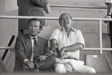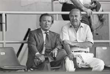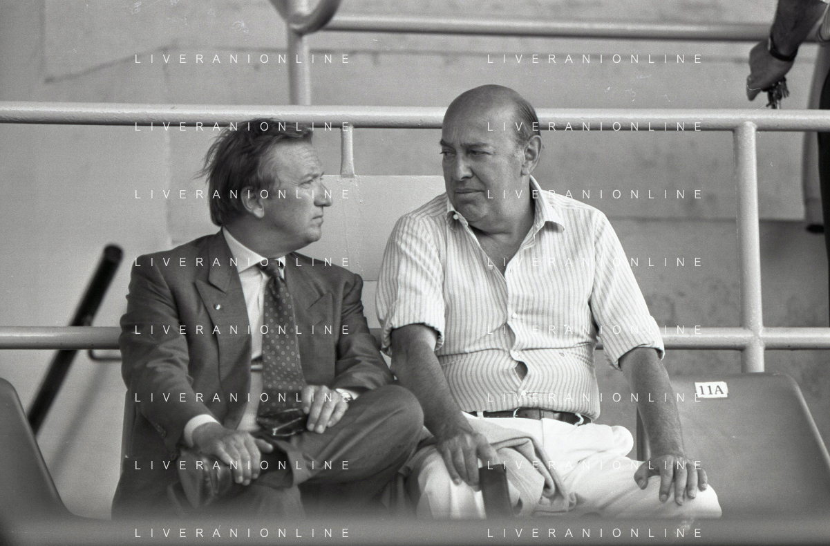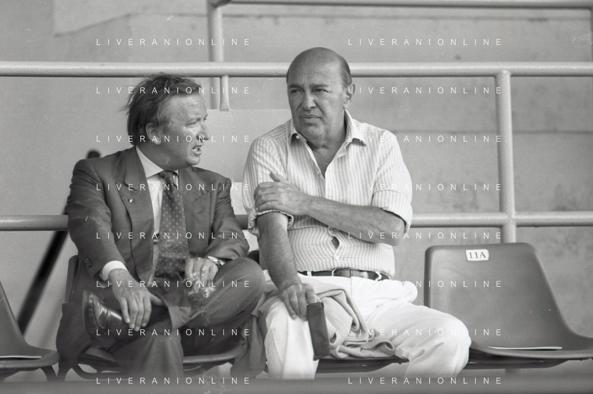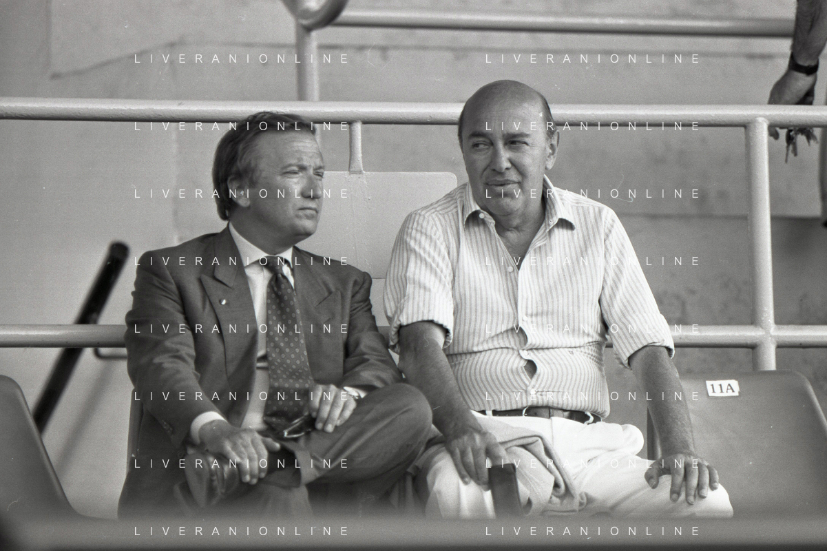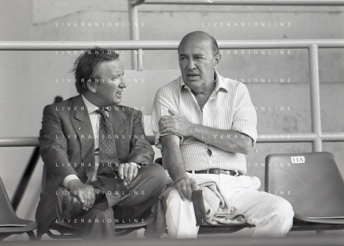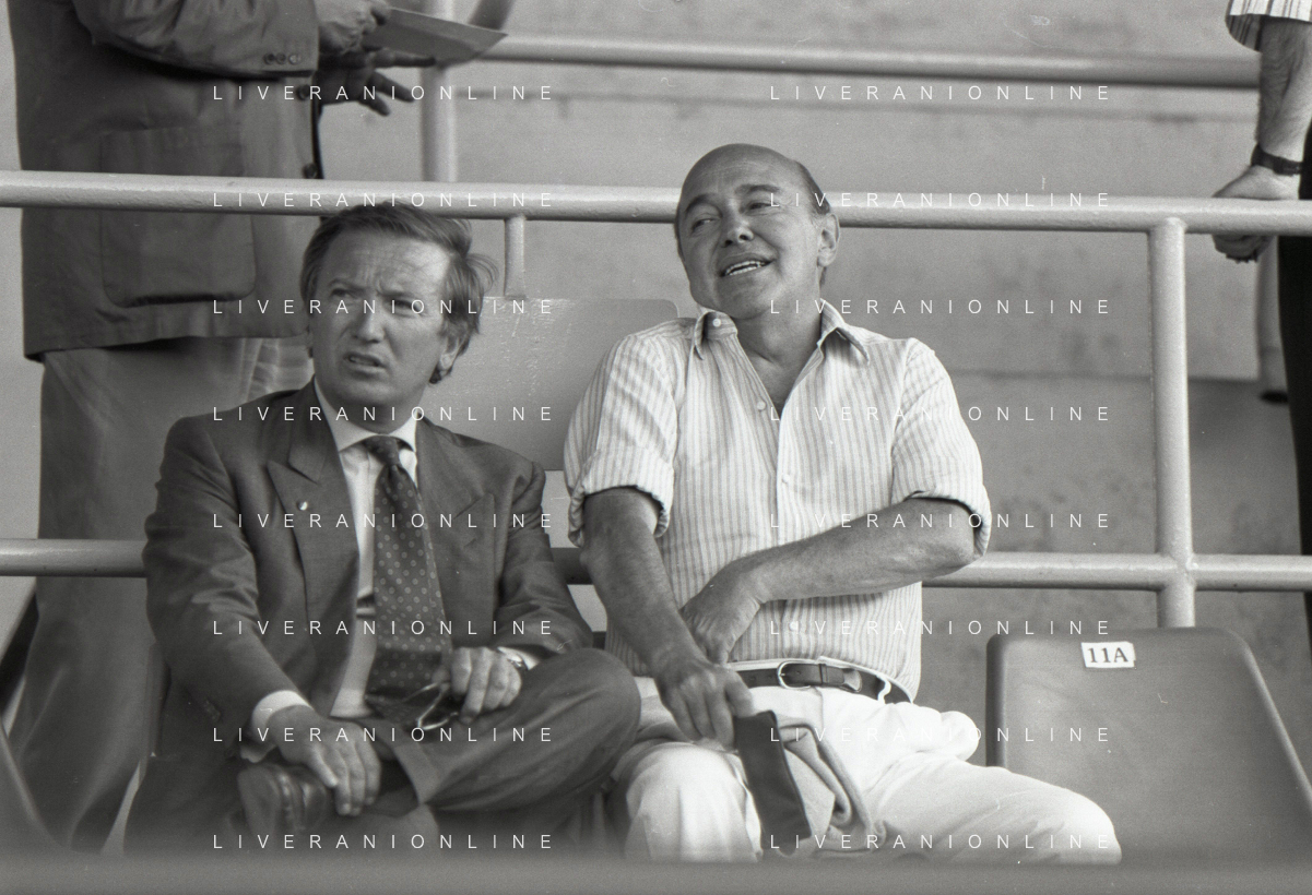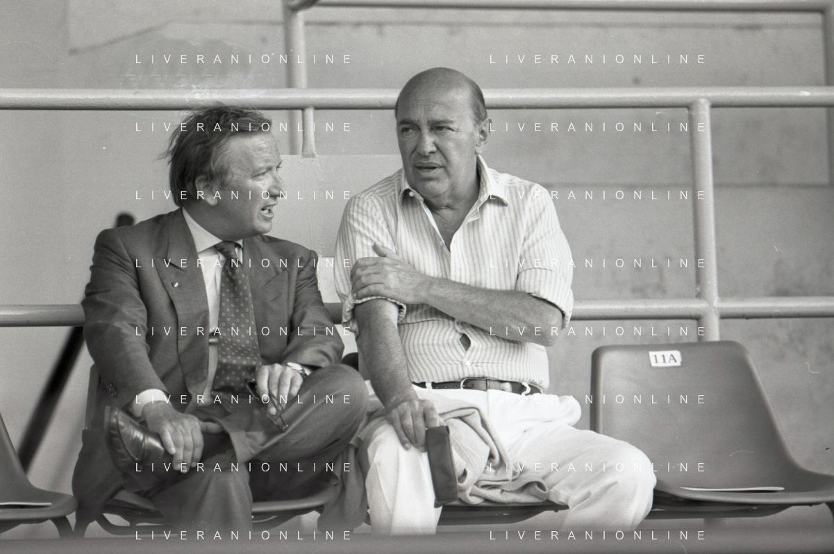 NEG-RETROSPETTIVA GIAN MAURO BORSANO PRESIDENTE TORINO CALCIO NELLA FOTO GIAN MAURO BORSANO NELL'ANNO 1990-1991 PRESIDENTE DEL TORINO CALCIO CON PAOLO MANTOVANI PRESIDENTE SAMPDORIA CALCIO AG ALDO LIVERANI SAS