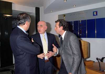 10-01-1997 MILANO LEGA CALCIO VIA ROSSELLINI NELLA FOTO ANTONIO GIRAUDO CON ADRIANO GALLIANI E MASSIMO CELLINO AG ALDO LIVERANI SAS