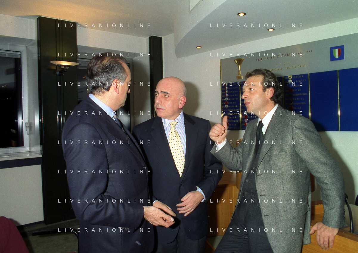 10-01-1997 MILANO LEGA CALCIO VIA ROSSELLINI NELLA FOTO ANTONIO GIRAUDO E ADRIANO GALLIANI CON MASSIMO CELLINO AG ALDO LIVERANI SAS