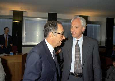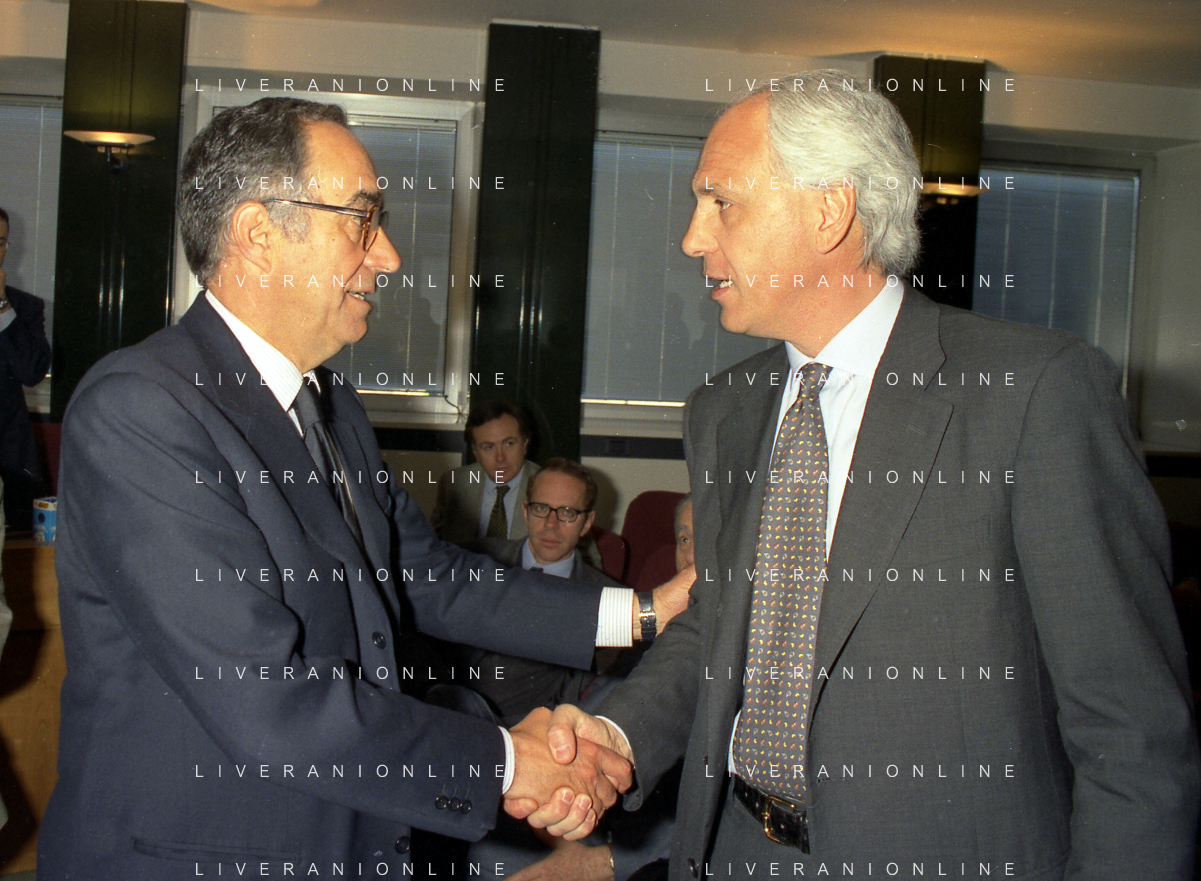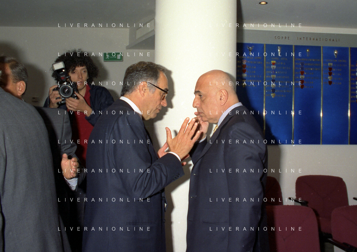 MILANO 04-04-1997 LEGA CALCIO NELLA FOTO ADRIANO GALLIANI E FRANCO CARRARO AG ALDO LIVERANI SAS