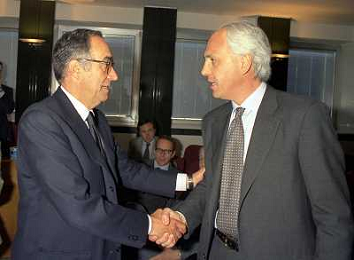 MILANO 04-04-1997 LEGA CALCIO NELLA FOTO MASSIMO MORATTI E GIAN MARIA VISCONTI DI MODRONE AG ALDO LIVERANI SAS