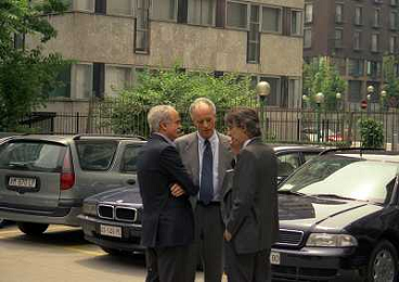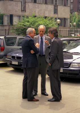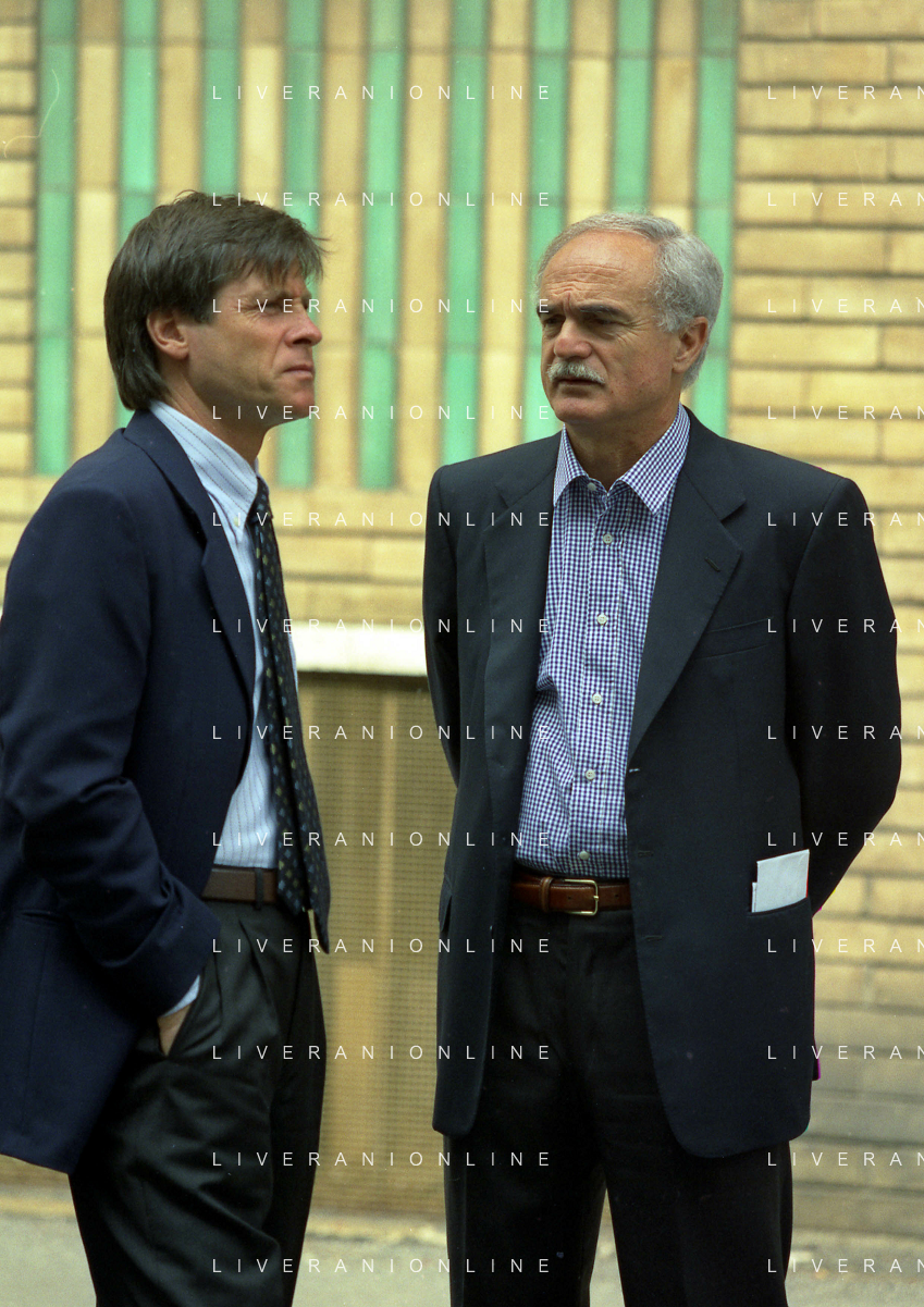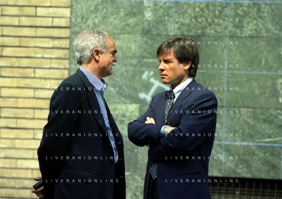 MILANO- 03-06-1998 LEGA CALCIO VIA ROSSELLINI RIUNIONE PRESIDENTI NELLA FOTO GIUSEPPE GAZZONI FRASCARA CON SANDRO MAZZOLA EGABRIELE ORIALI AG ALDO LIVERANI SAS