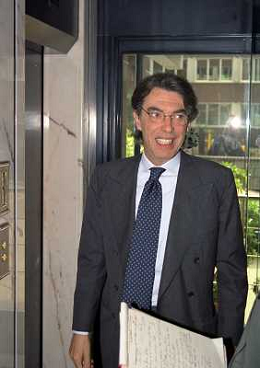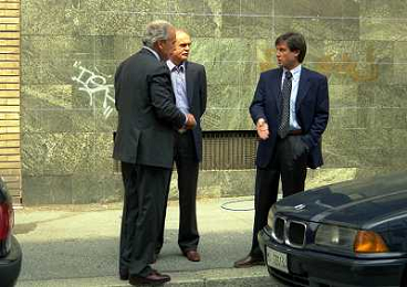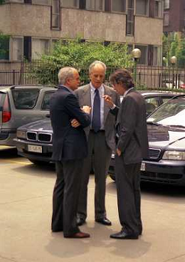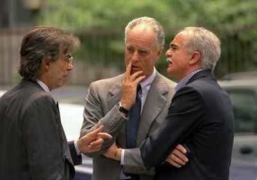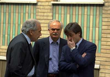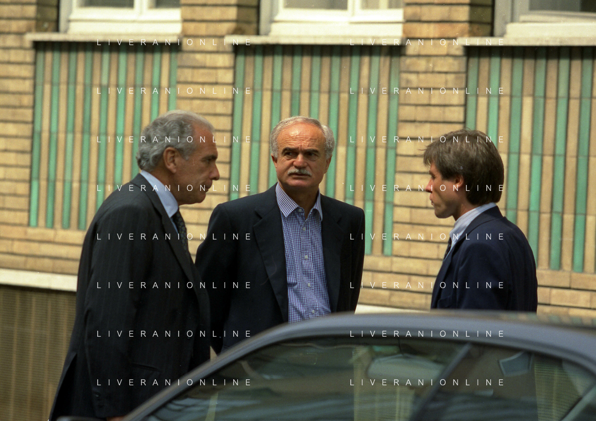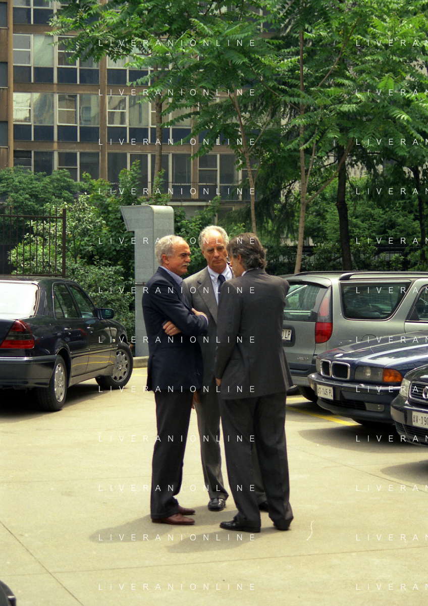 MILANO- 03-06-1998 LEGA CALCIO VIA ROSSELLINI RIUNIONE PRESIDENTI NELLA FOTO MASSIMO MORATTI CON SANDRO MAZZOLA E GIAN MARIA VISCONTI DI MODRONE AG ALDO LIVERANI SAS