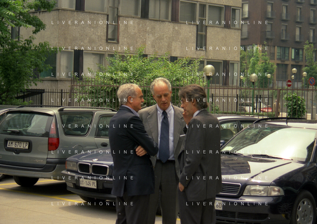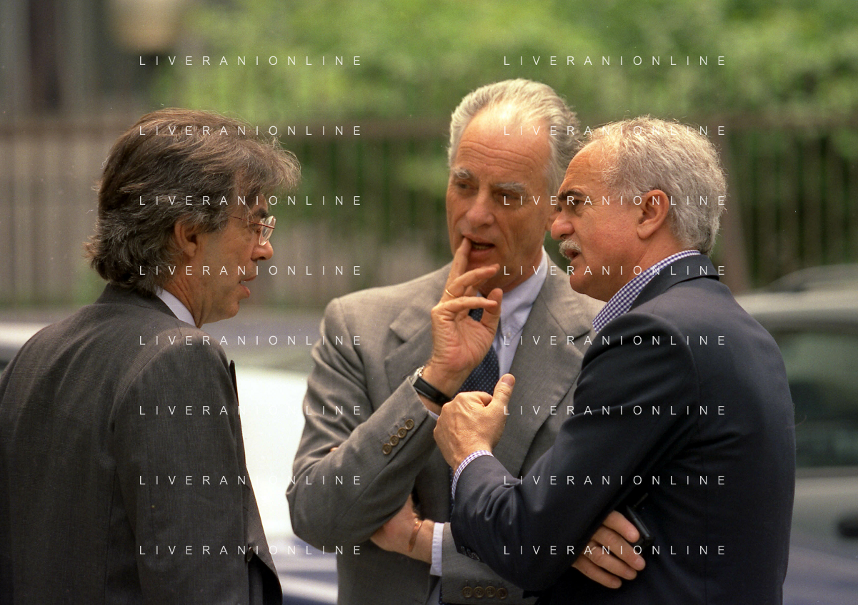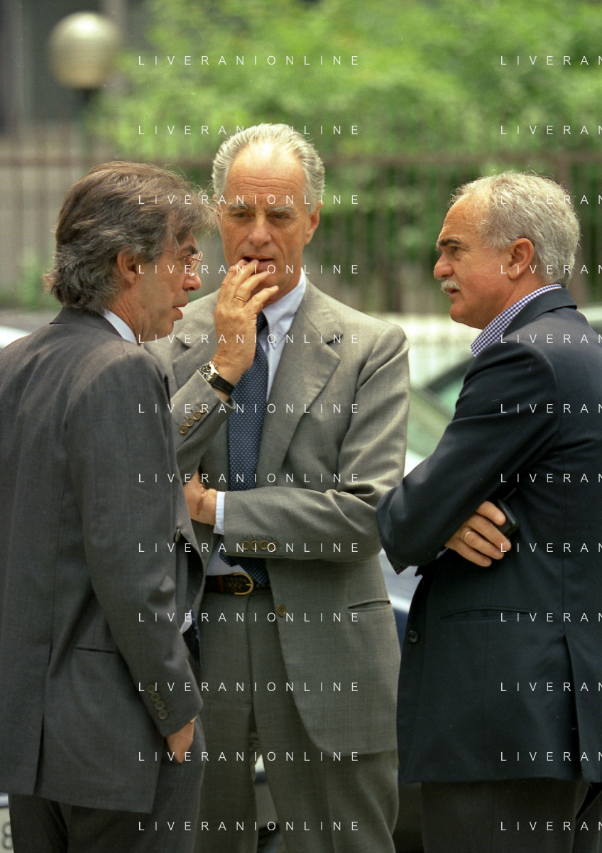 MILANO- 03-06-1998 LEGA CALCIO VIA ROSSELLINI RIUNIONE PRESIDENTI NELLA FOTO GIUSEPPE GAZZONI FRASCARA SANDRO MAZZOLA E GABRIELE ORIALI AG ALDO LIVERANI SAS
