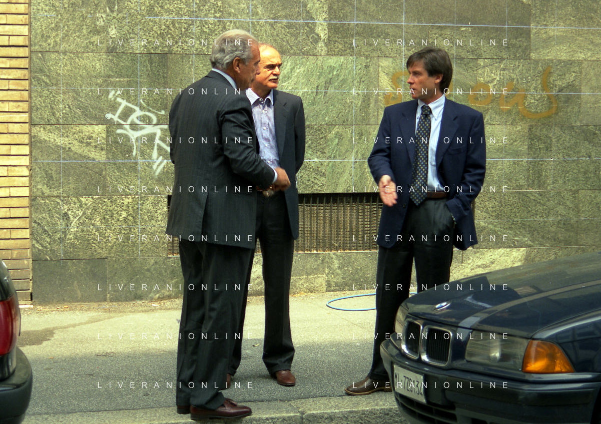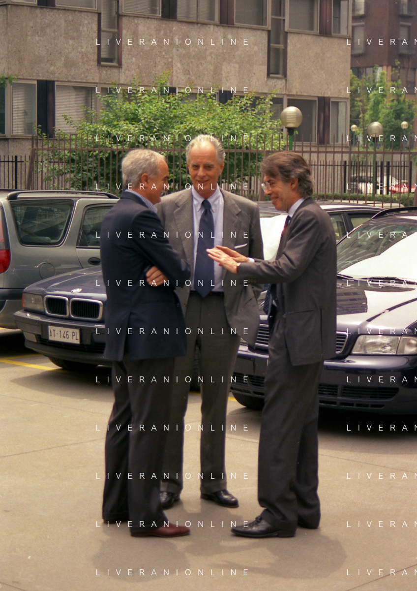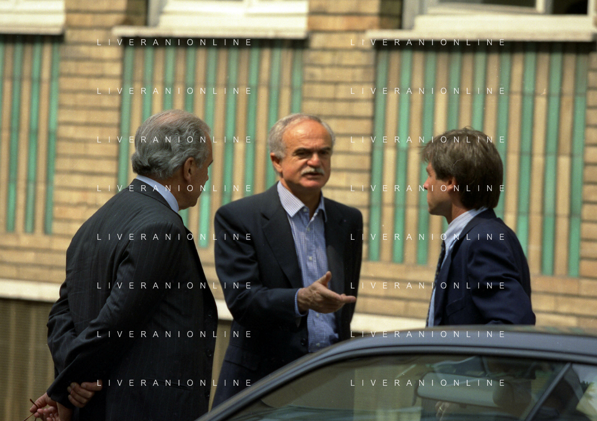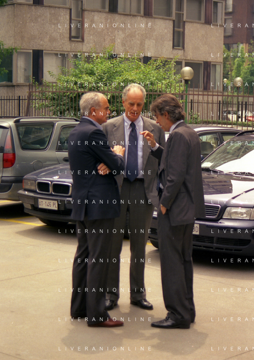 MILANO- 03-06-1998 LEGA CALCIO VIA ROSSELLINI RIUNIONE PRESIDENTI NELLA FOTO GIUSEPPE GAZZONI FRASCARA SANDRO MAZZOLA E GABRIELE ORIALI AG ALDO LIVERANI SAS