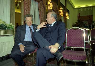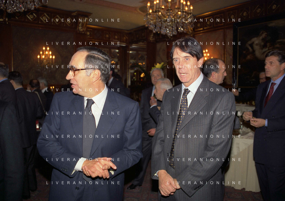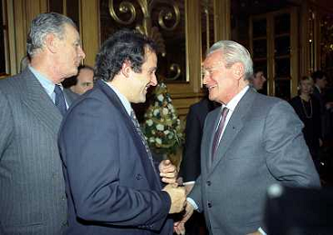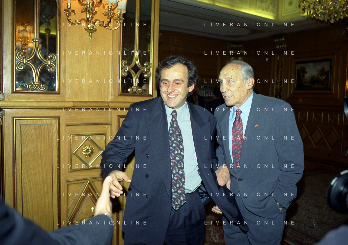 19-12-1996 MILANO LEGA CALCIO VIA ROSSELLINI- ASSEMBLEA PRESIDENTI NELLA FOTO MICHEL PLATINI-GIAMPIERO BONIPERTI AG ALDO LIVERANI SAS