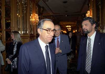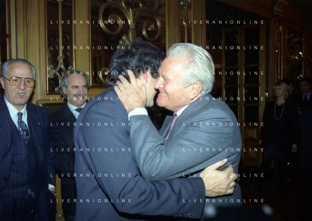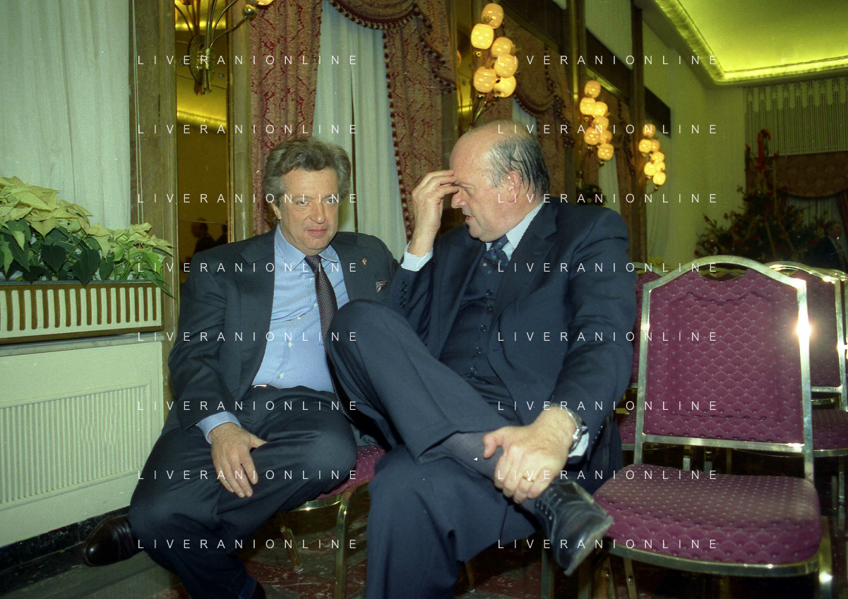 19-12-1996 MILANO LEGA CALCIO VIA ROSSELLINI- ASSEMBLEA PRESIDENTI NELLA FOTO VITTORIO CECCHI GORI CON PAOLO CASARIN AG ALDO LIVERANI SAS
