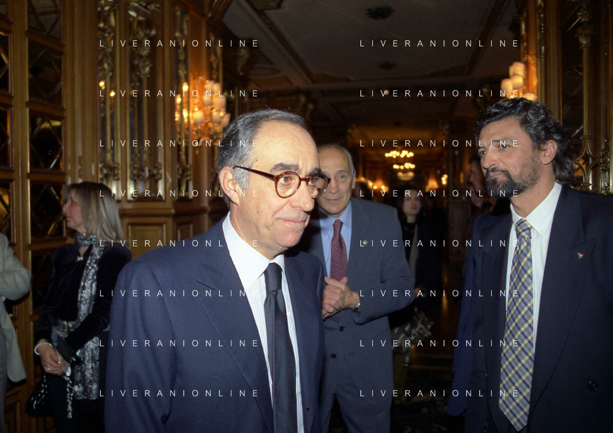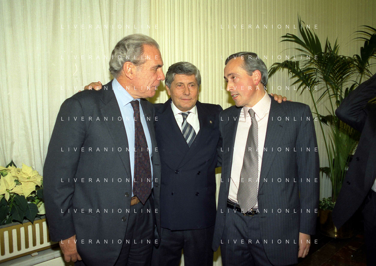 19-12-1996 MILANO LEGA CALCIO VIA ROSSELLINI- ASSEMBLEA PRESIDENTI NELLA FOTO GIUSEPPE GAZZONI FRASCARACON LUCIANO NIZZOLA E GIANCARLO ABETE AG ALDO LIVERANI SAS